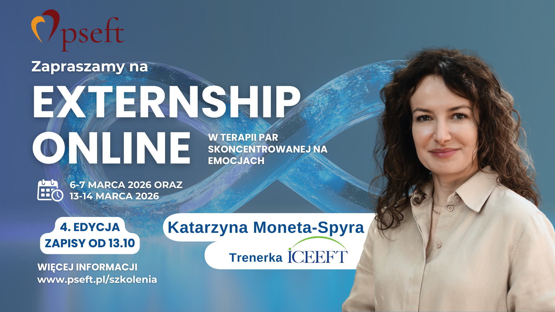 Zapraszamy na 4. edycję organizowanego przez Polskie Stowarzyszenie EFT 4-dniowego szkolenia wstępnego w psychoterapii par w nurcie EFT (Emotionally Focused Couple Therapy). Szkolenie Externship jest pierwszym krokiem na drodze do uzyskania międzynarodowego certyfikatu terapeuty par EFT przyznawanego przez ICEEFT (www.iceeft.com).